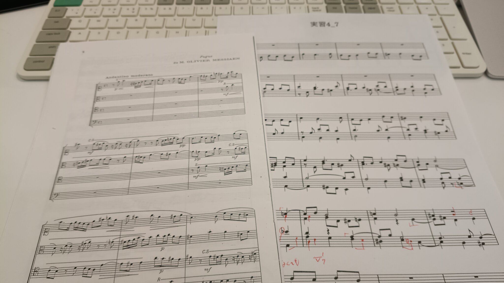 183回目の作曲レッスンを受けました。ようやく嬉遊部の転調を自然に進められたのですが、特定の声部で動きがメロディらしくないものになってしまいます。後いくつか音を入れるだけでメロディらしくなるのですが、なかなかそのパターンを用いることができません。また、課題となっている主唱でメシアンが実施しているフーガを一緒に分析していただきました。メシアンが17歳の時に作ったフーガとのことですが、どうすればこれほど考えられたものを作れるのか分からないほどです。