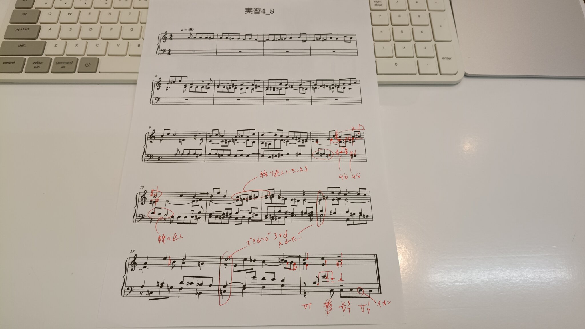 和声問題の受験課題は、事前に家で書いて行ったのですが、音を出せる環境で実施すると圧倒的に早く、色々なパターンを思い付くことが出来ました。やはり、作曲をするには頭の中でもっと確実に音を鳴らせるようにしていかなければならないと感じます。まだ、こんな感じに聞こえるかなという程度なので、精度を上げていけるよう色々な音を聞いていきます。