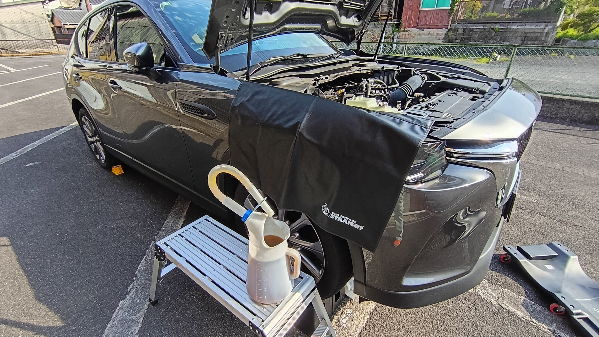 「CX-60(5BA-KH5P)」のエンジンオイルとオイルフィルタを交換しました、作業時のODOメータは29,750km。朝早い時間に作業したのですが、作業していると暑いほどでした。青空作業なので、これからはいつも以上に手早く作業しなければ。オイルは今回からMOTUL「H-TECH 100 PLUS 5W-30」に変更しました。これまでは純正のマツダ「ゴールデンECO7(0W-20)」を使用していましたが、3年目の車検も終わったことですし、純正のオイルを使わなくても良いかなと変更しました。粘度も5W-30に変更しましたが、特に変化は感じていません。